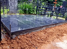 Первым делом мы демонтируем памятник, цветник, снимаем оградку, разламываем прилегающую к дорожке бетонную полосу. Затем выставляем опалубку по периметру участка.