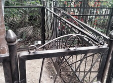 Могила стандартная, не большая. Когда-то здесь стоял гранитный памятник и была высокая ограда. После очередного захоронения плиту убрали в сторону, цветник тоже подняли, переднюю часть ограду демонтировали, установили временный крест.